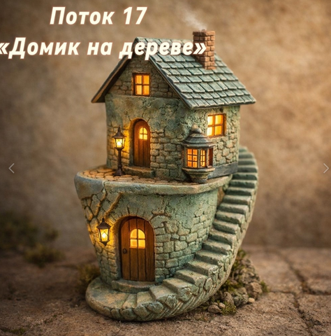В этом потоке — всё новое и захватывающее: фантастическое дерево с удивительно вылепленной корой, декоративные камешки, шикарная винтовая инженерная лестница вокруг круглого домика и потрясающий сказочный лесной фон, который обвивает дом на два этажа. Каждый элемент продуман — и всё это можно посмотреть и повторить.